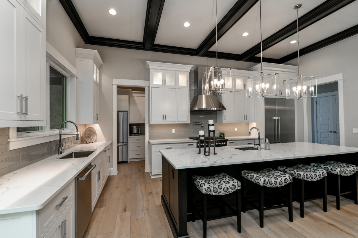 White kitchens remain a timeless favorite—but now they’re evolving. Designers are introducing contrast through dark islands, black fixtures, and natural wood accents. The result? A modern, high-impact space that still feels classic and clean.