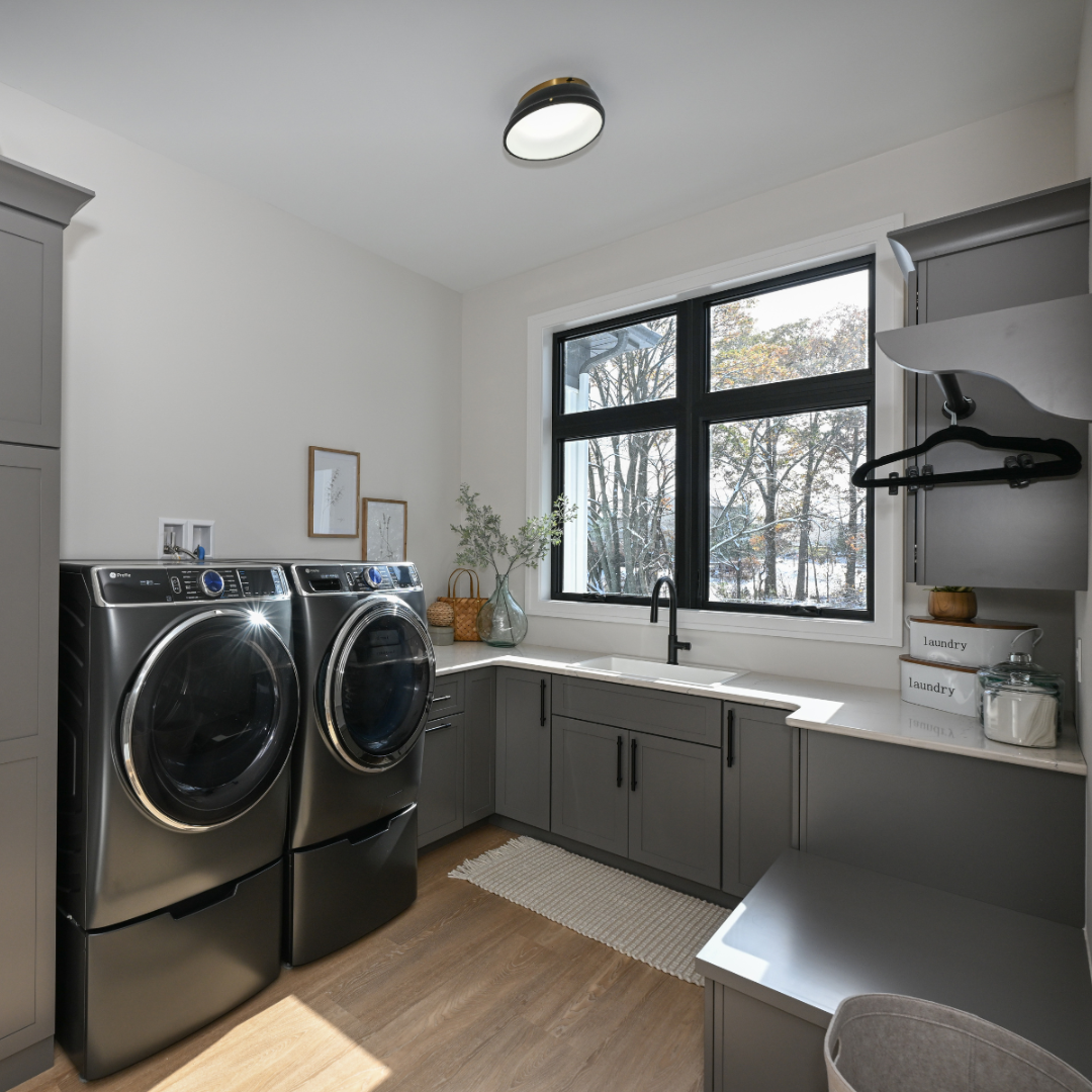 Custom cabinetry around your washer and dryer can make laundry feel less like a chore.