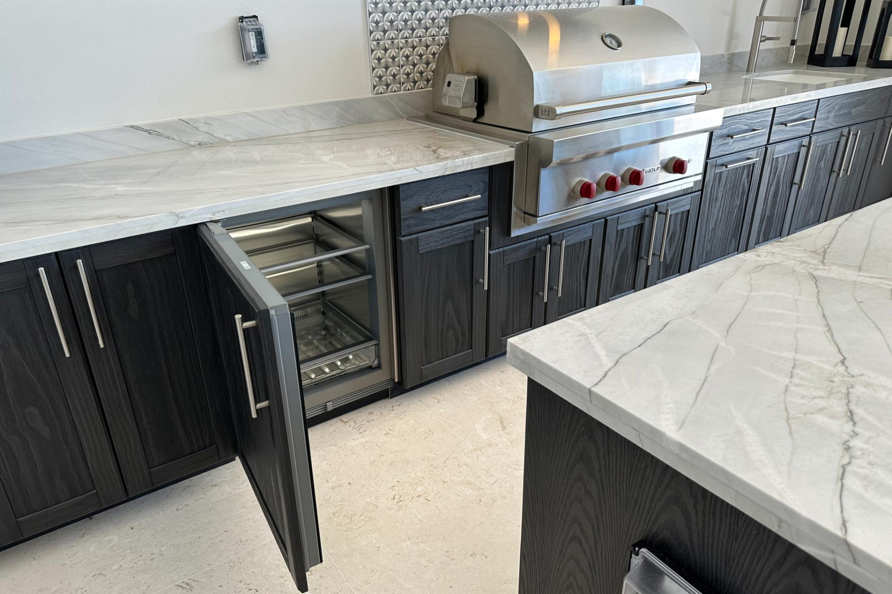 Durable storage is a game-changer in an outdoor environment. Weatherproof cabinetry is essential, from humidity and UV rays to heavy rain and salt air (especially in Florida).