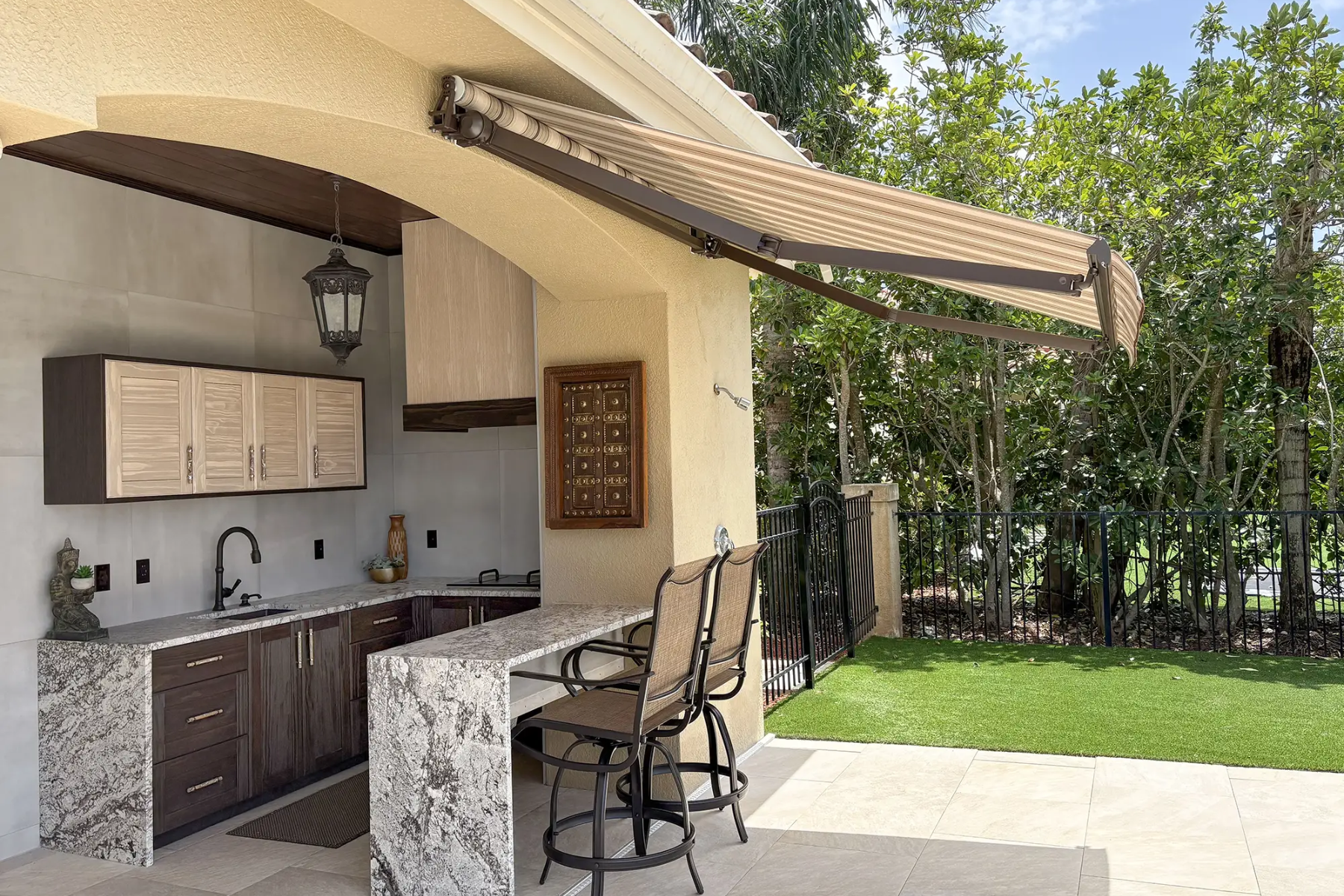 Protective Measures: Use covers for grills and appliances, and ensure cabinetry is sealed or finished to resist weather.