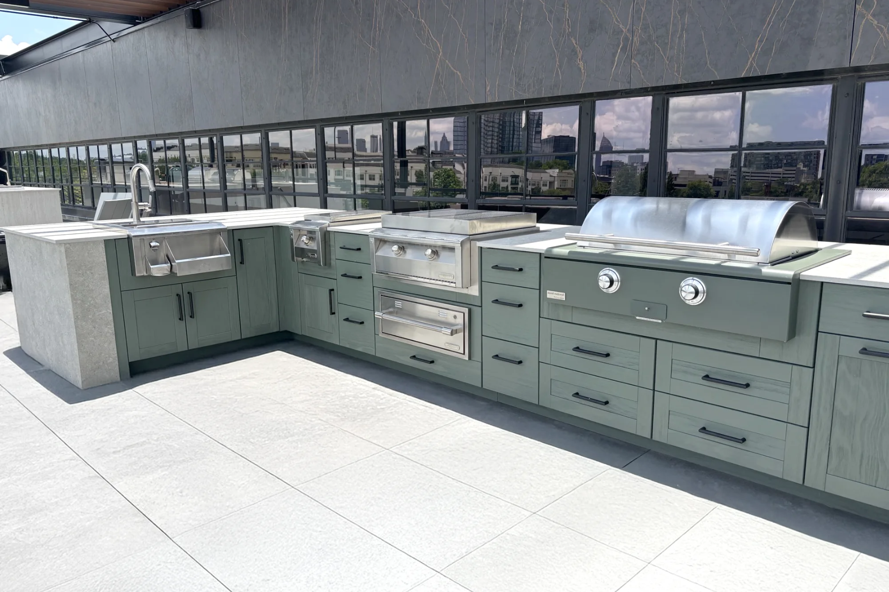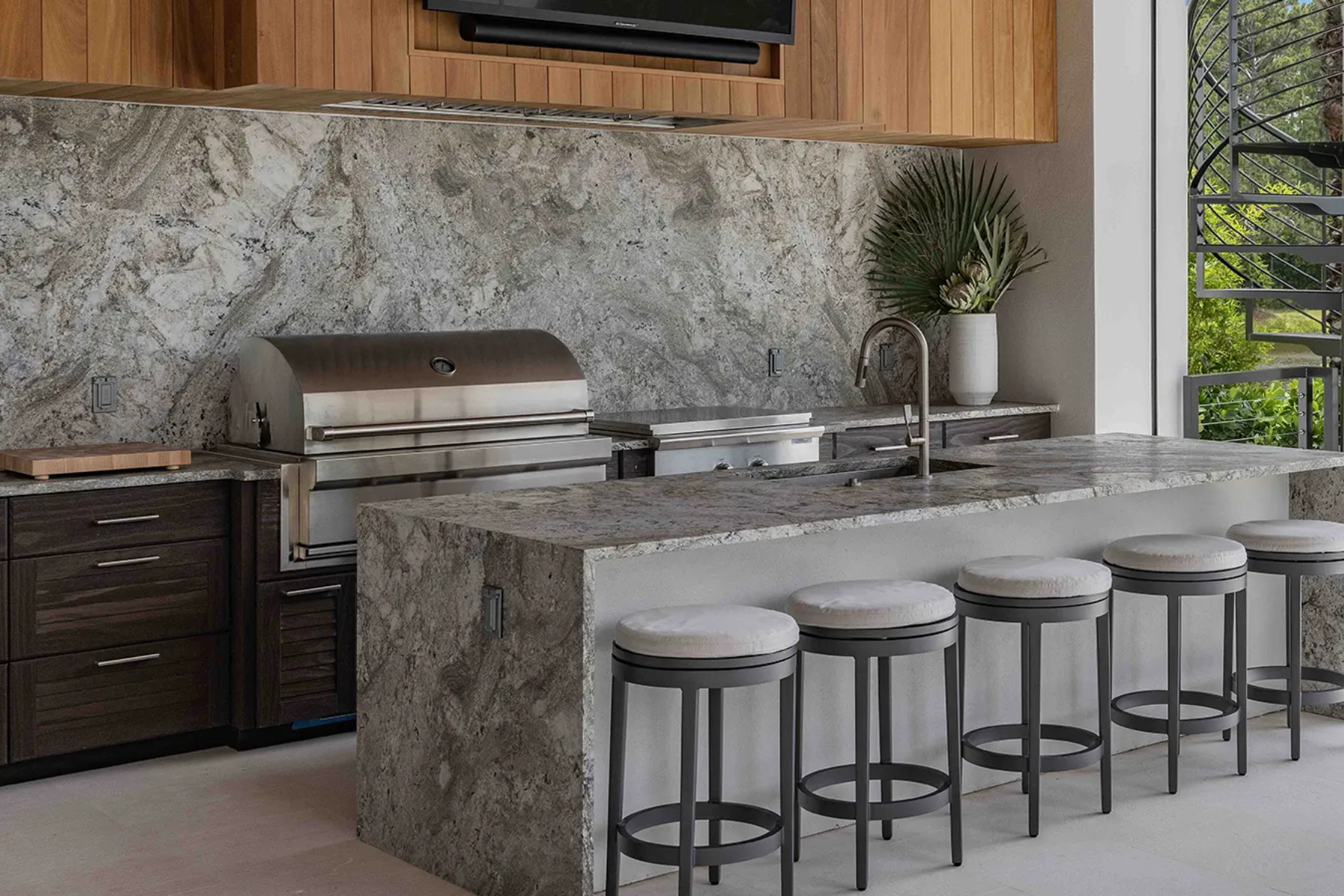 These materials are not only tough enough to withstand harsh weather conditions but also add a touch of elegance to any outdoor kitchen setup, making them perfect for a high-end, functional space.